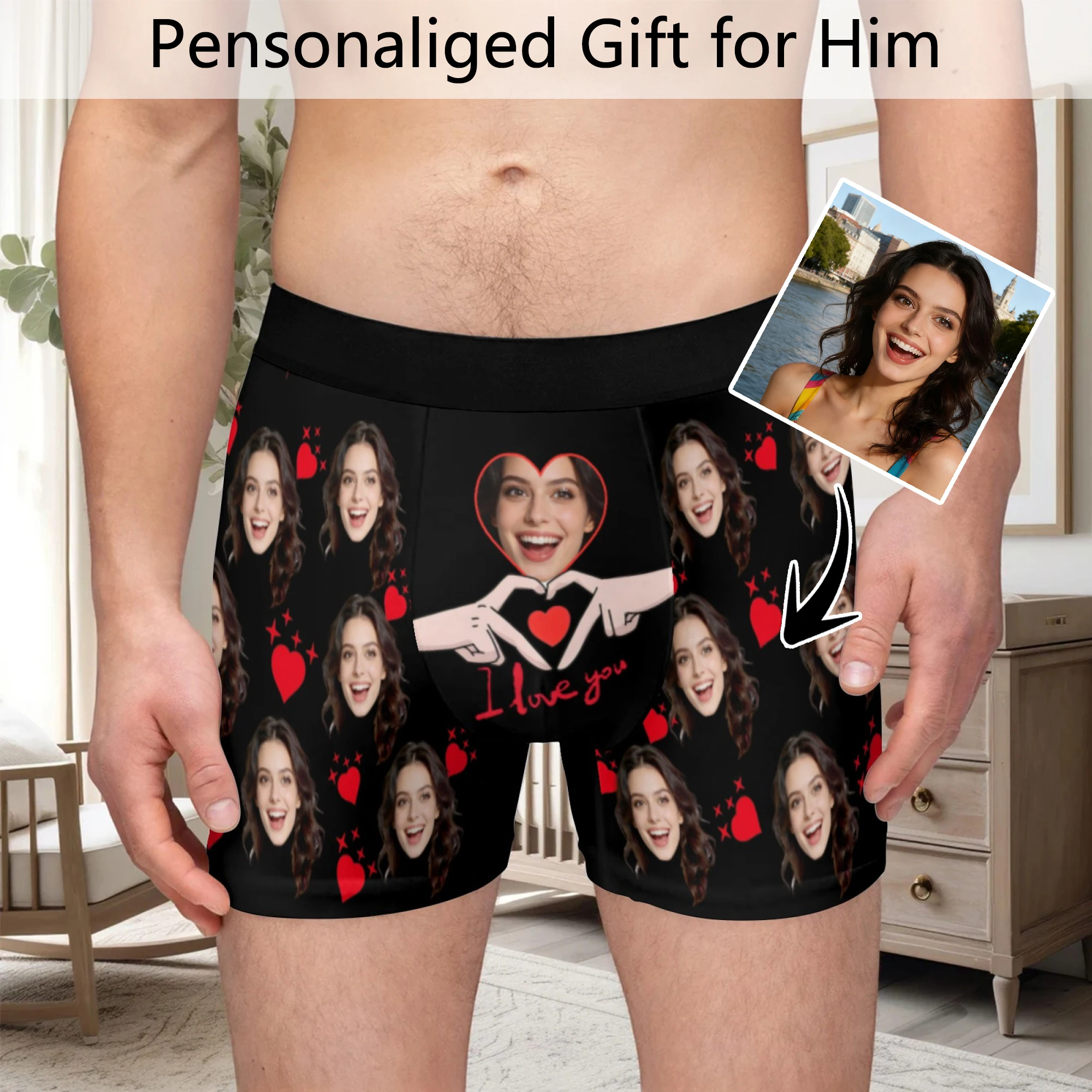 Personalized facial photos customized underwear flat cornered men's Valentine's Day gift for husband anniversary gift for fath
