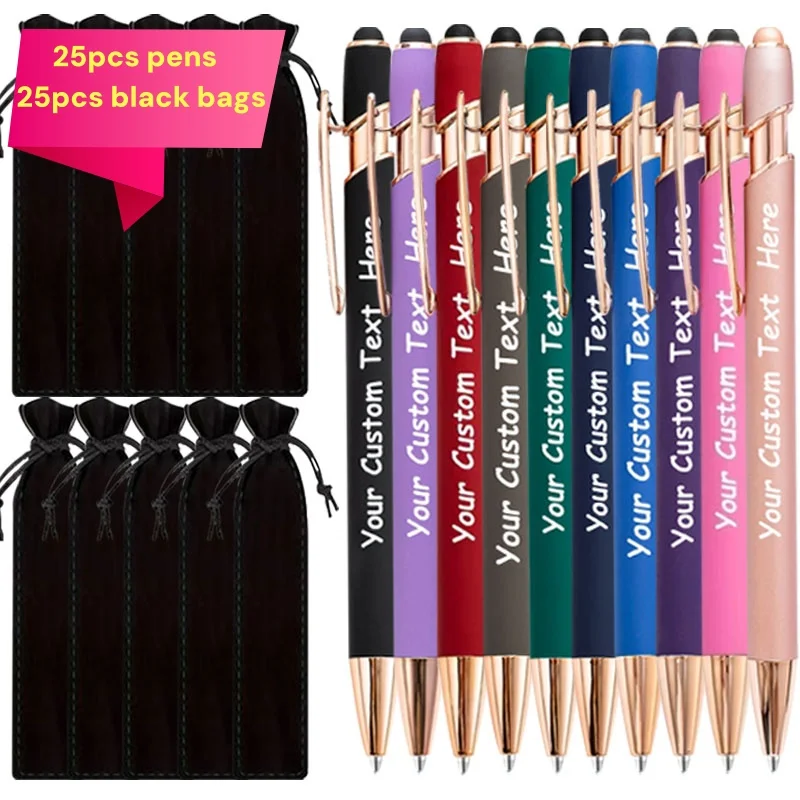 25Sets Custom Ballpoint Pens Name Personalized Soft Touch Rubber Soft Touch Exquisite Custom Pen Women'S Gift Pen Men'S Gifts