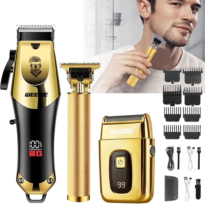 3-in-1 USB Rechargeable Men's Vintage T9 Barber Kit/Wireless Hair Clipper/Beard Trimmer For Home/Salon Perfect Gift for Men